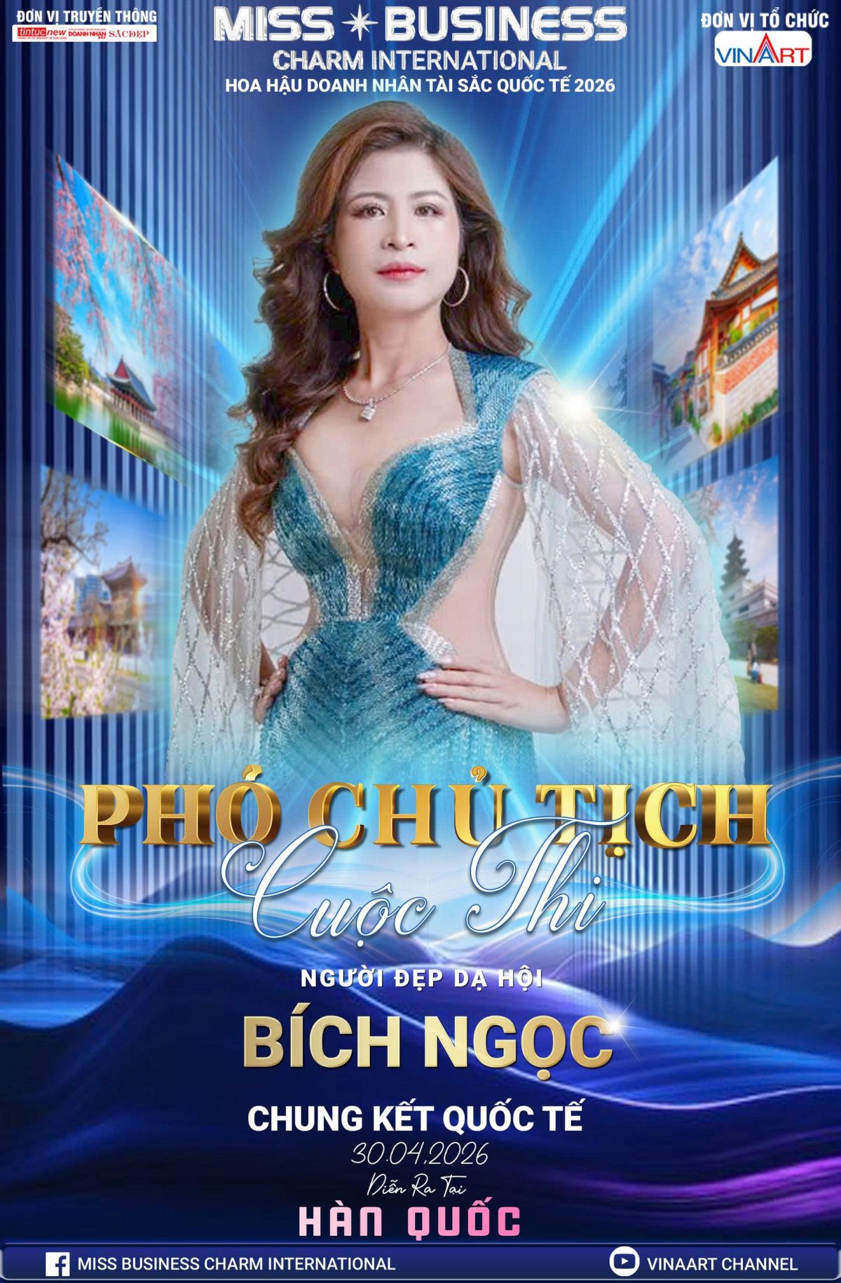 Giữa không gian rực rỡ của mùa xuân Hàn Quốc, nơi chung kết quốc tế 30.04.2026 sẽ chính thức diễn ra, Miss Business Charm International bước vào mùa thứ 3 với một diện mạo mới, đẳng cấp hơn, chuẩn mực hơn và giàu chiều sâu hơn. Đồng hành cùng bước chuyển mình ấy là sự xuất hiện đầy trọng lượng của Người đẹp Dạ hội – Vedette Bích Ngọc trong vai trò Phó Chủ tịch cuộc thi.